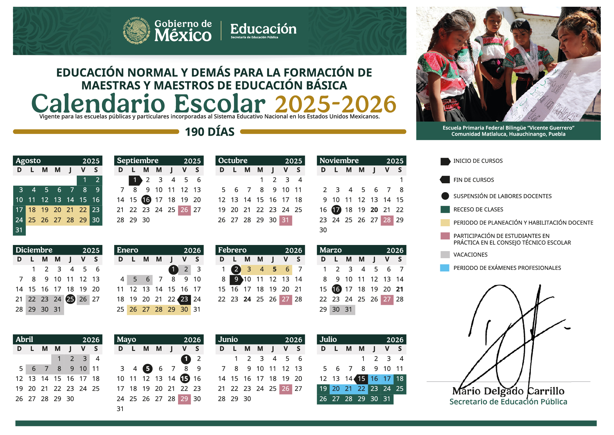 El calendario escolar 2025-2026 de Educación Normal, detalla las fechas clave y eventos importantes, ha sido diseñado para proporcionar una visión clara y organizada del ciclo escolar, facilitando la planificación tanto para estudiantes como para personal docente y administrativo.
